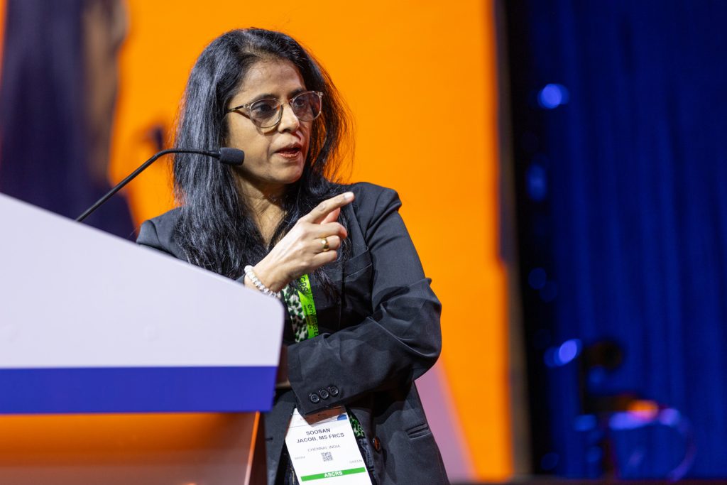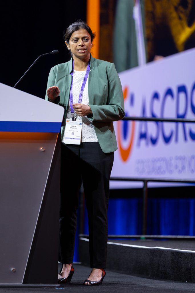 Leela Raju, MD, presented the first video of the session, sharing the โgroove and peelโ technique for anterior lamellar keratoplasty. Her video described that this could work well with keratoconus and patients with anterior stromal scars.
