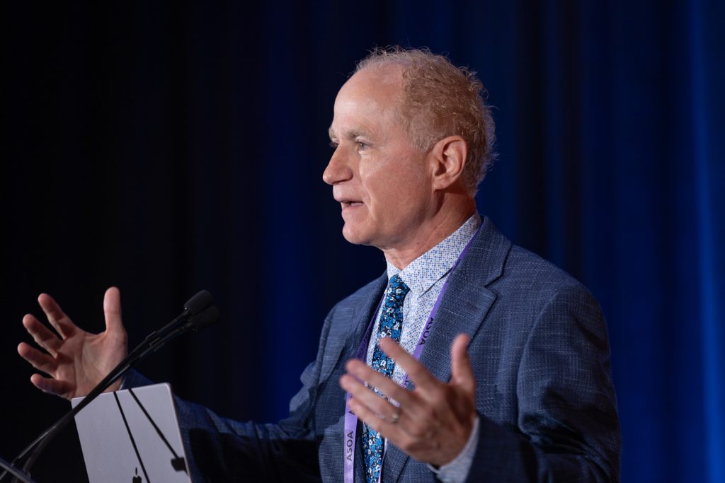 Whatโs the next technology? Dr. Krueger spoke about acoustic pressure waves: extracorporeal shock wave therapy. This technology, he said, can soften hardened tissues. โThe lens and sclera get hard over time. Could we use this?โ